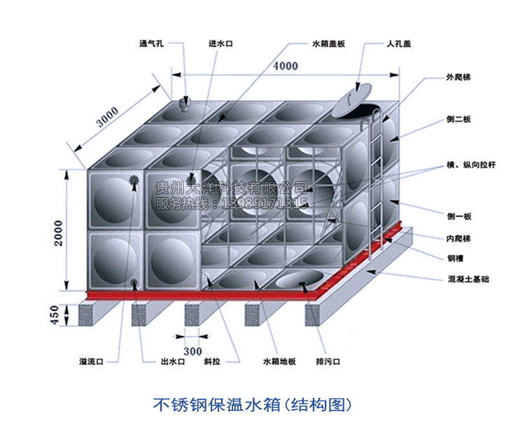 該保溫水箱是以不銹鋼板、彩鋼板等為表層,閉孔阻燃自熄型 聚苯乙烯料板或聚氨酯等為芯層,通過優(yōu)化組合,使內(nèi)外層共同達到最佳保溫效果,該水箱具有外形美觀,機械強度高,性能優(yōu)良,組裝方便等優(yōu)越特點。